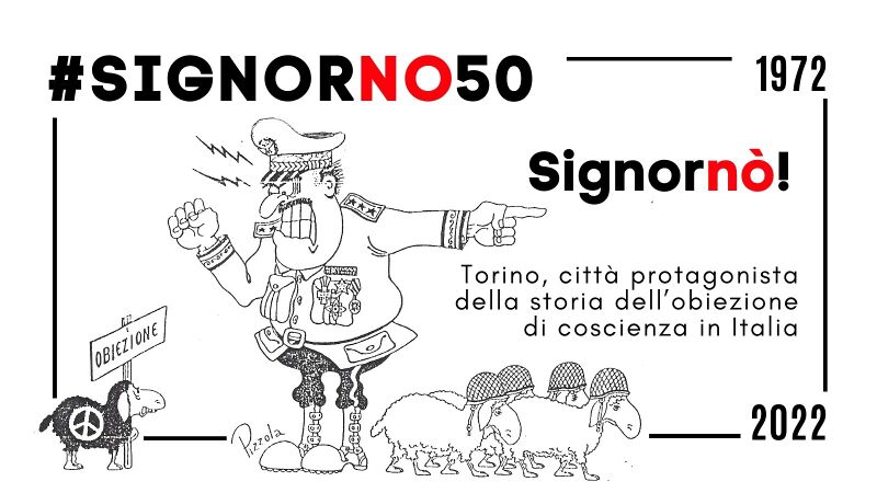 IL PROGETTO SIGNORNÒ! (in occasione del 50° anniversario dell'approvazione della legge sull'obiezione di coscienza)l Progetto «Signornò! Torino, città protagonista della storia dell’obiezione di coscienza in Italia» intende offrire, attraverso una valorizzazione dei fondi archivistici del Centro Studi Sereno Regis, uno strumento di indagine e approfondimento della storia dell’obiezione di coscienza, proponendo un doppio sguardo: uno è rivolto all’Italia, l’altro a Torino. |