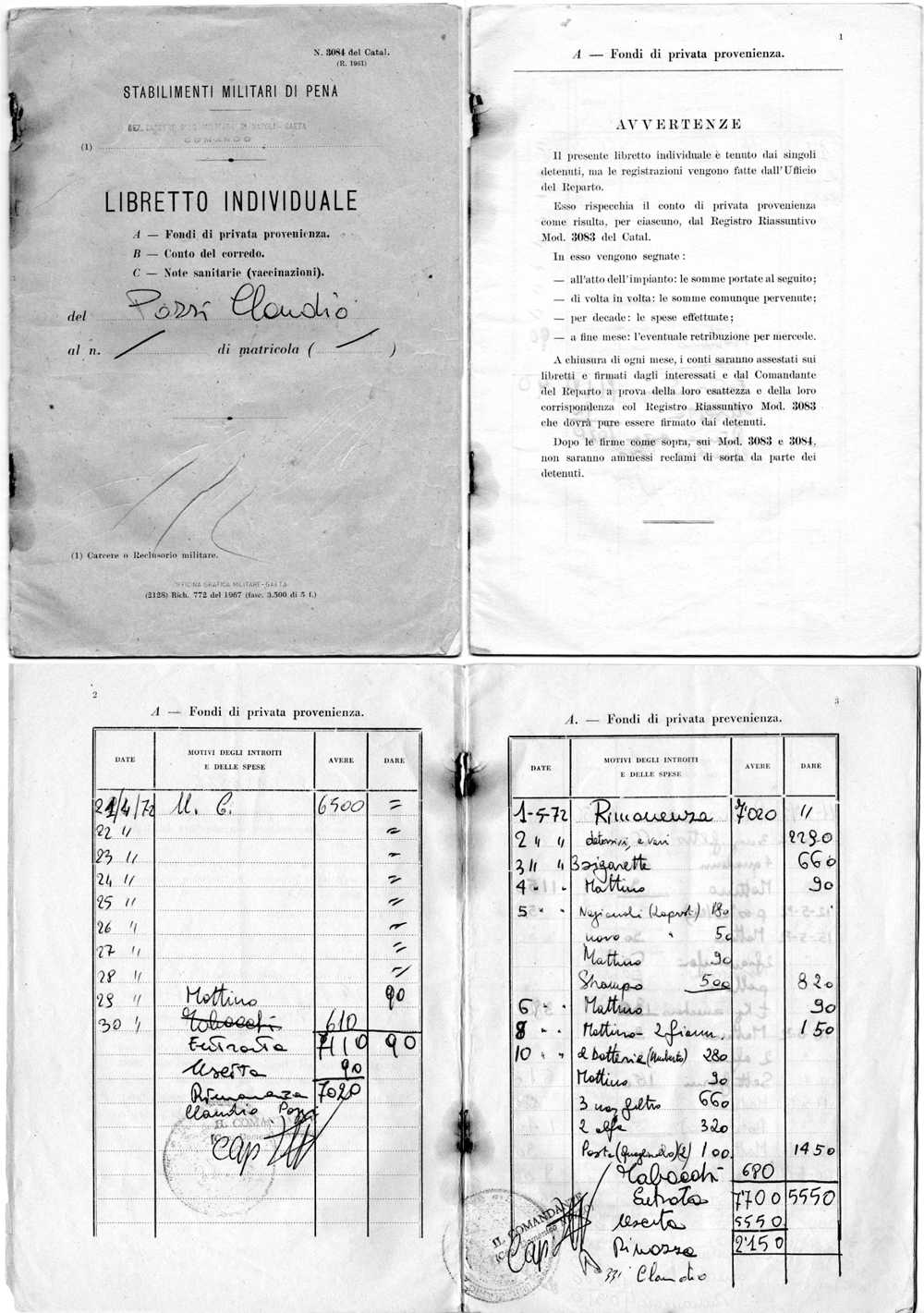 Libretto individuale in dotazione di ogni detenuto del carcere di Gaeta | Fondo personale di Claudio Pozzi |