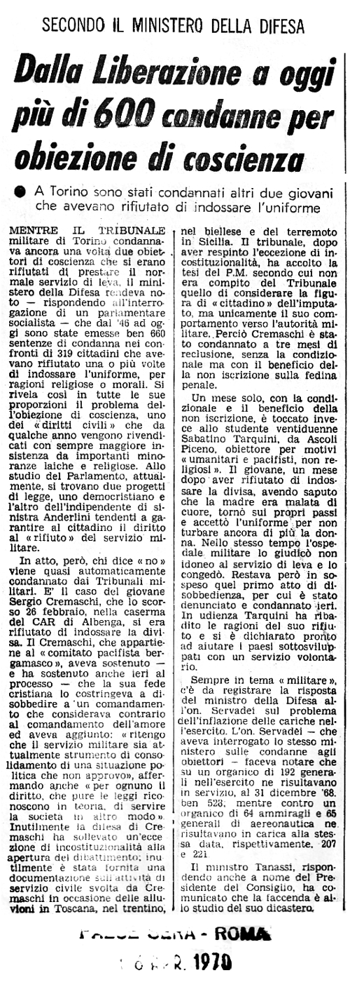 7 marzo 1970 Obiezione di coscienza |