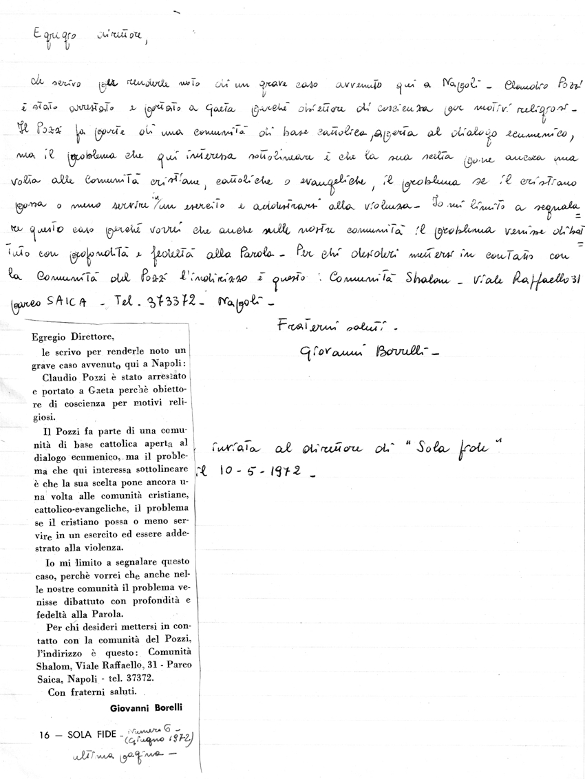 giugno 1972 Lettera al Direttore di Giovanni Borelli |